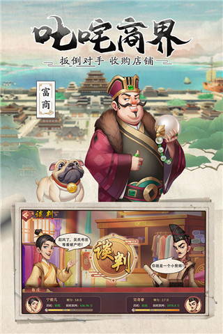 虽然你只是一个刚起步的小商人,但是经营产业的方式让人眼前一亮,而这也使得你被许多商会给盯上了,他们会在你经商的路上施加许多阻挠,例如故意找茬,恶意抬价等等,而你则需要与门客一起用财力与口才击碎他们的阴谋,以其人之道还治其人之身。